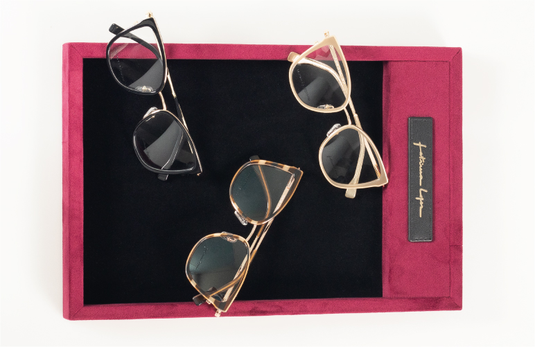 Clássico design com linhas finas incorporadas numa armação de metal disponível em três cores.